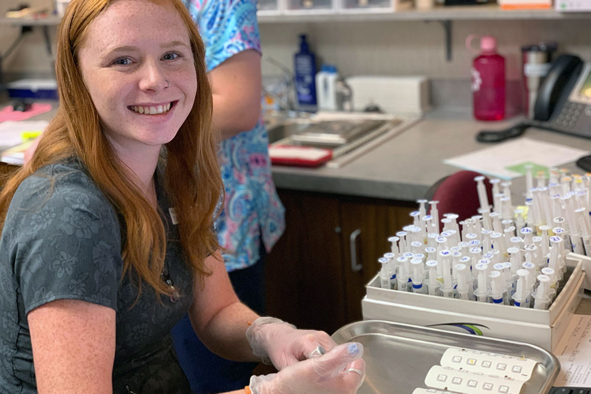 Allergic contact dermatitis is tested by a procedure called patch testing. To perform patch testing, purified allergens are placed individually in chambers that are taped to a patient’s back and remain in place for about 48 hours. After 48 hours, the patches are removed and the underlying skin is examined (if a patient lives a significant distance from our clinic, this step can be done at home in many cases). The patient then returns about 24-48 hours later for one more reading. Positive contact allergens show up as small areas of inflamed skin on the patient’s back.